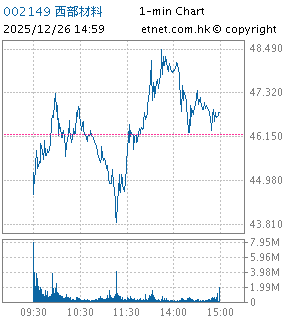 | 002149 | 西部材料 | 46.780 | +0.580 | +1.255% | 71.31亿 | 144.7401 | 深股通 | |