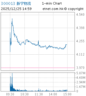 300013新宁物流升4.220+0.250+6.297%3.16亿--