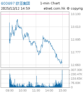 | 600697 | 欧亚集团 | 12.680 | -0.450 | -3.427% | 1.29亿 | -- | 沪股通 | |